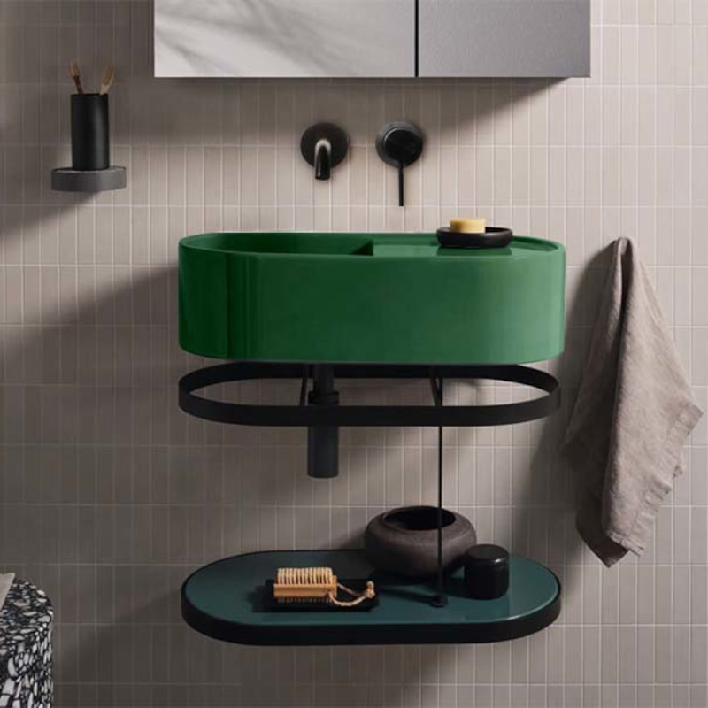 CIELO Les Petites Раковина накладная или подвесная без отверстий под смеситель, без слива-перелива. Одна сторона не покрыта эмалью. При установке на столешницу рекомендуется запросить опцию “RETTIFICA”. В комплекте с крепежами. Размеры: 60x30x16h см. Цвет Alga.