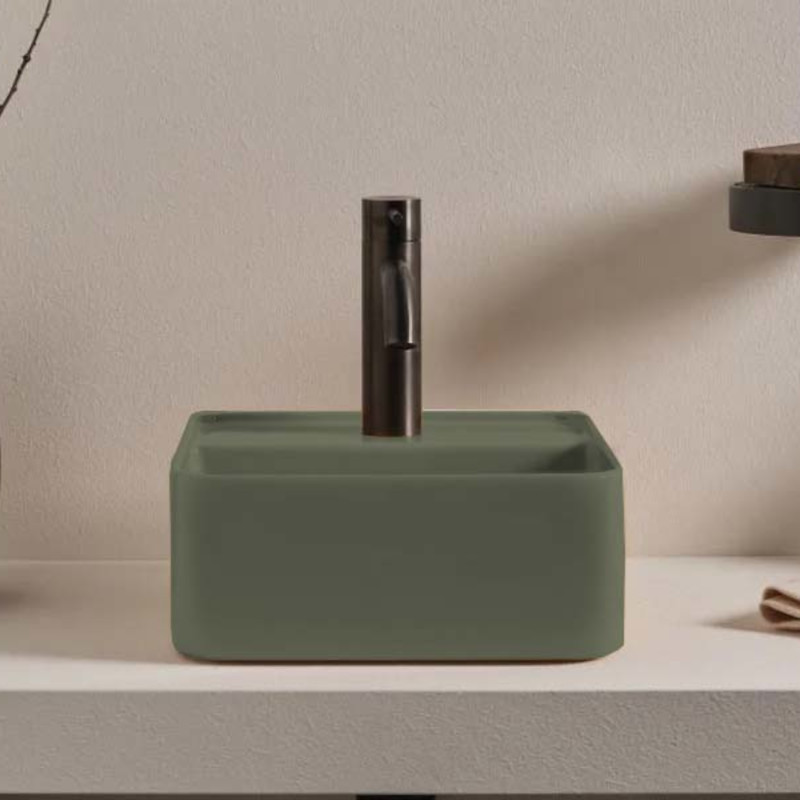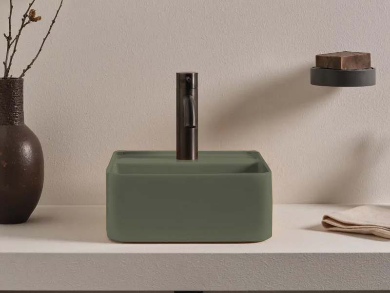 CIELO Les Petites Раковина квадратная накладная или подвесная с одним отверстием под смеситель, без слива-перелива. Все стороны покрыты эмалью. При установке на столешницу рекомендуется запросить опцию “RETTIFICA”. В комплекте с крепежами. Размеры: 35x35x16h см. Цвет Agave.