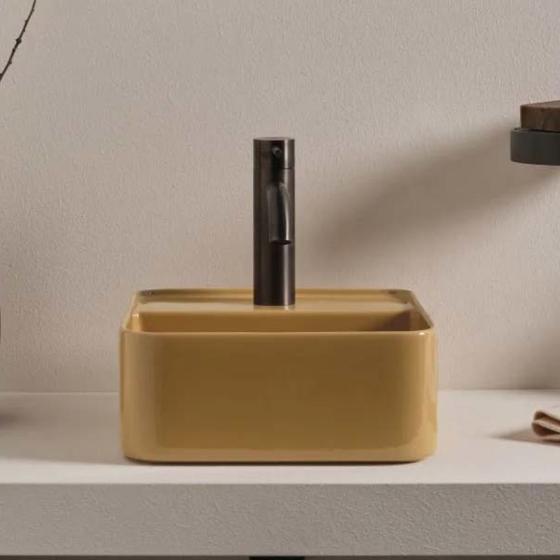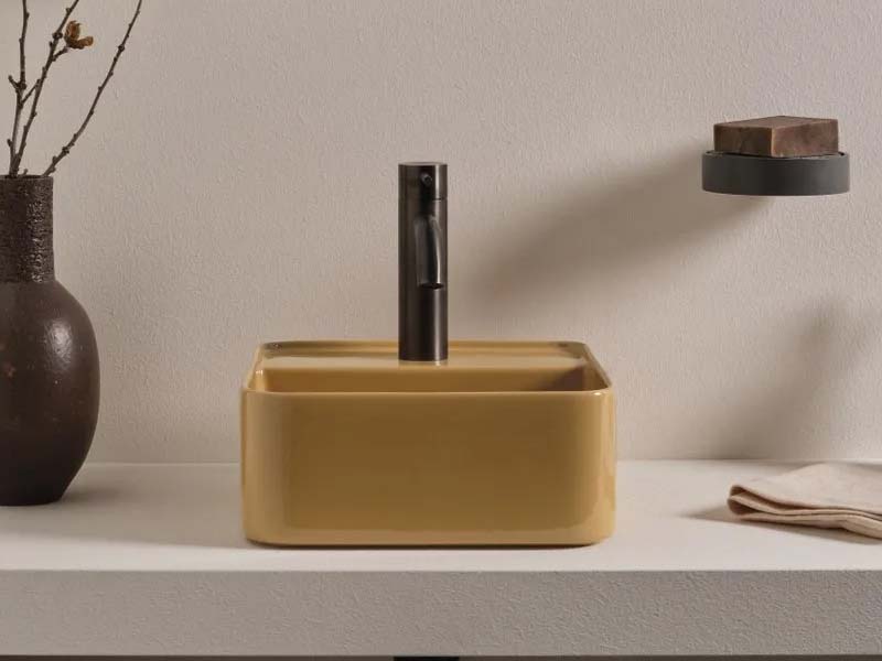 CIELO Les Petites Раковина квадратная накладная или подвесная с одним отверстием под смеситель, без слива-перелива. Все стороны покрыты эмалью. При установке на столешницу рекомендуется запросить опцию “RETTIFICA”. В комплекте с крепежами. Размеры: 35x35x16h см. Цвет Anemone.