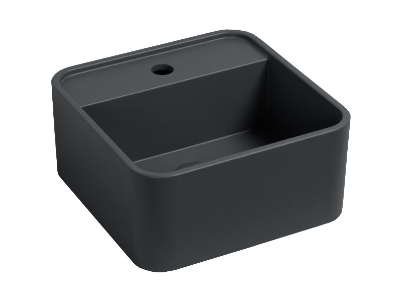 CIELO Les Petites Раковина квадратная накладная или подвесная с одним отверстием под смеситель, без слива-перелива. Все стороны покрыты эмалью. При установке на столешницу рекомендуется запросить опцию “RETTIFICA”. В комплекте с крепежами. Размеры: 35x35x16h см. Цвет Basalto.