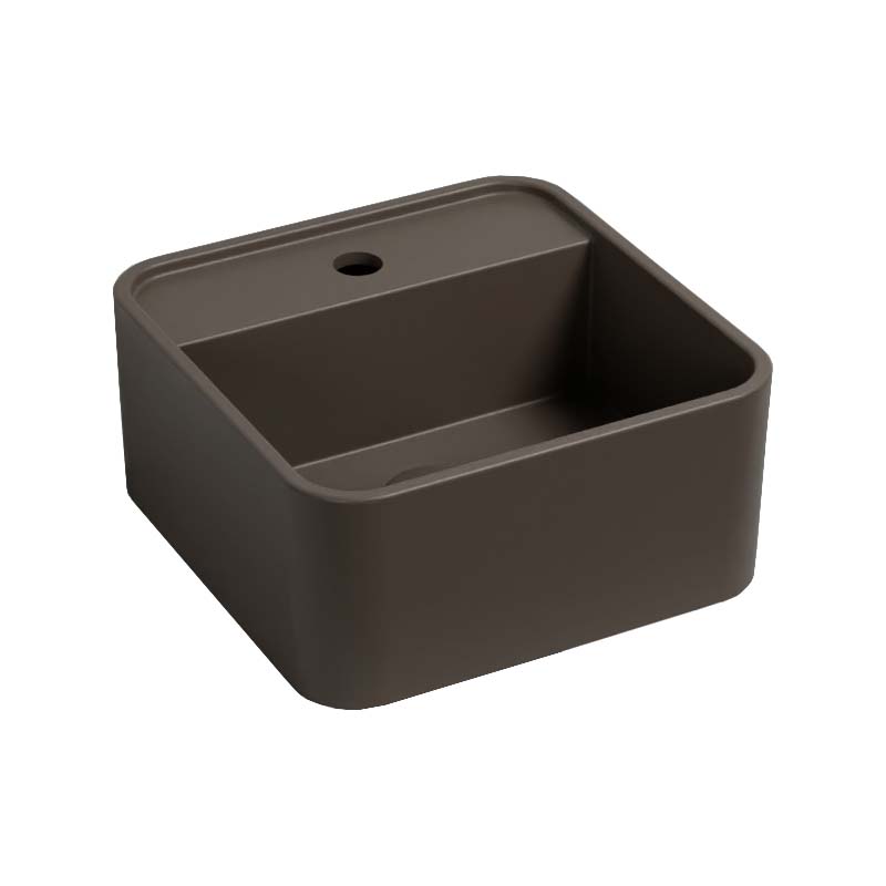 CIELO Les Petites Раковина квадратная накладная или подвесная с одним отверстием под смеситель, без слива-перелива. Все стороны покрыты эмалью. При установке на столешницу рекомендуется запросить опцию “RETTIFICA”. В комплекте с крепежами. Размеры: 35x35x16h см. Цвет Cacao.