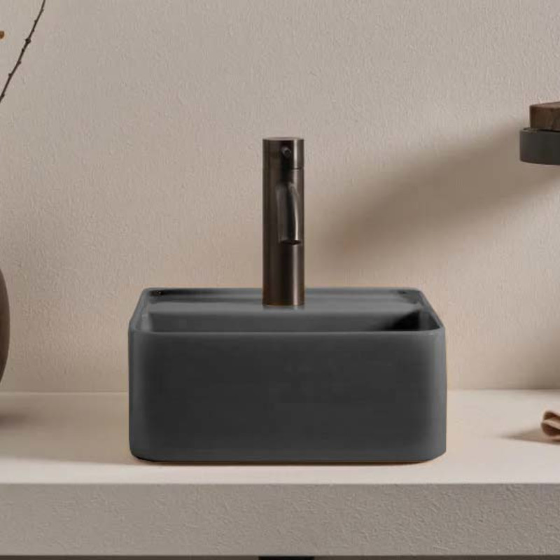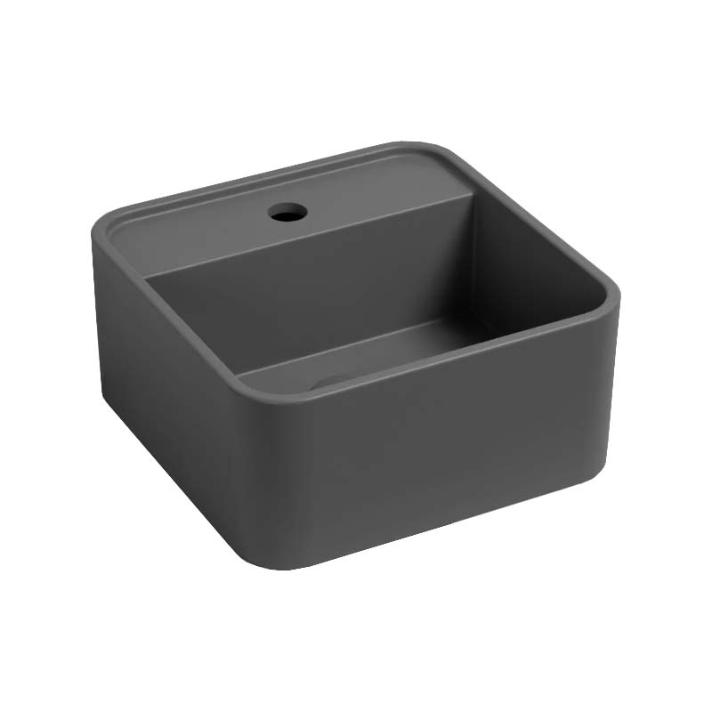 CIELO Les Petites Раковина квадратная накладная или подвесная с одним отверстием под смеситель, без слива-перелива. Все стороны покрыты эмалью. При установке на столешницу рекомендуется запросить опцию “RETTIFICA”. В комплекте с крепежами. Размеры: 35x35x16h см. Цвет Cemento.