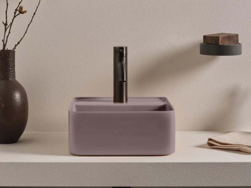CIELO Les Petites Раковина квадратная накладная или подвесная с одним отверстием под смеситель, без слива-перелива. Все стороны покрыты эмалью. При установке на столешницу рекомендуется запросить опцию “RETTIFICA”. В комплекте с крепежами. Размеры: 35x35x16h см. Цвет Cipria.