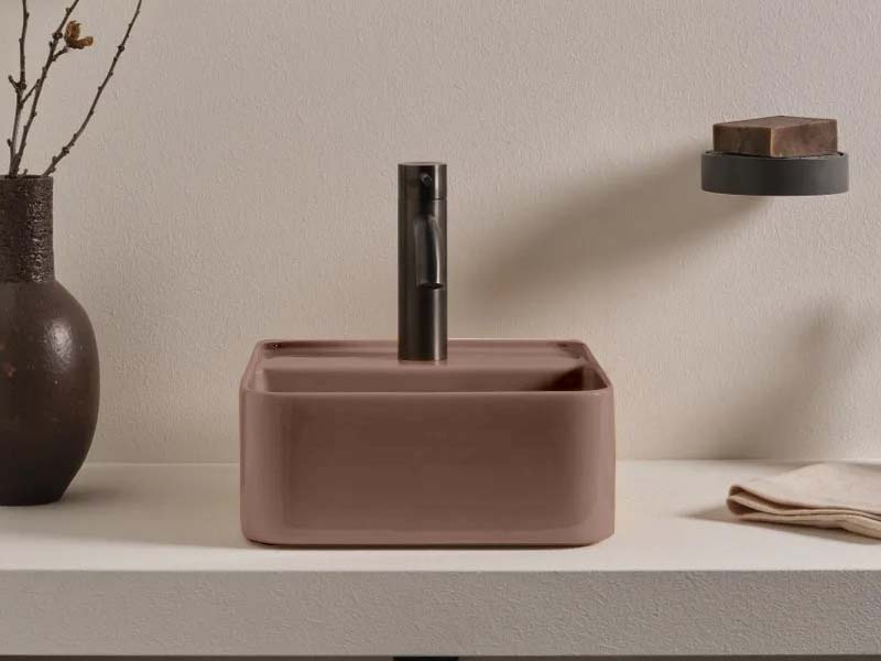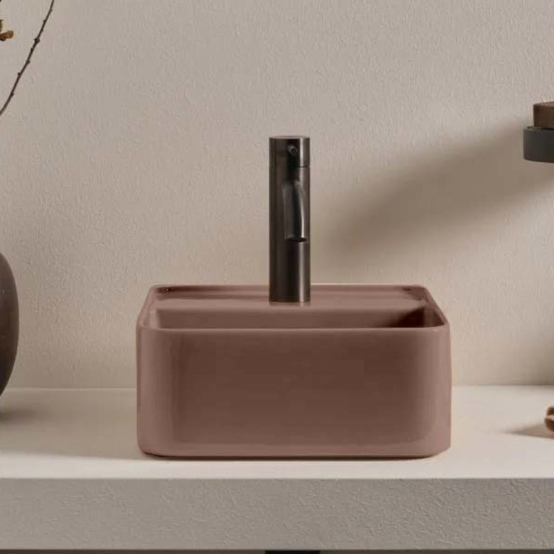 CIELO Les Petites Раковина квадратная накладная или подвесная с одним отверстием под смеситель, без слива-перелива. Все стороны покрыты эмалью. При установке на столешницу рекомендуется запросить опцию “RETTIFICA”. В комплекте с крепежами. Размеры: 35x35x16h см. Цвет Ninfea.
