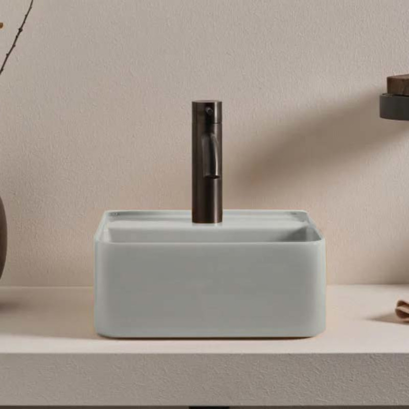 CIELO Les Petites Раковина квадратная накладная или подвесная с одним отверстием под смеситель, без слива-перелива. Все стороны покрыты эмалью. При установке на столешницу рекомендуется запросить опцию “RETTIFICA”. В комплекте с крепежами. Размеры: 35x35x16h см. Цвет Pomice.