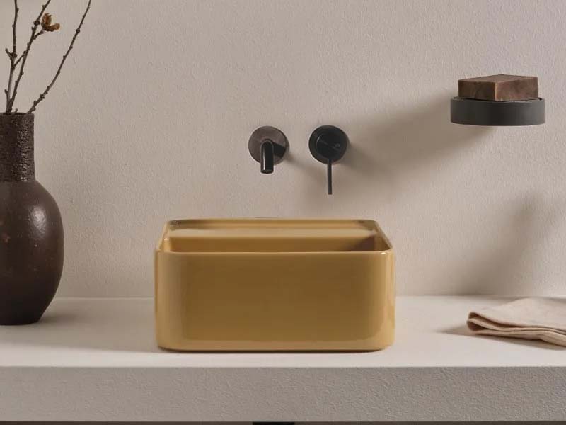 CIELO Les Petites Раковина квадратная накладная или подвесная без отверстия под смеситель, без слива-перелива. Все стороны покрыты эмалью. При установке на столешницу рекомендуется запросить опцию “RETTIFICA”. В комплекте с крепежами. Размеры: 35x35x16h см. Цвет Anemone.
