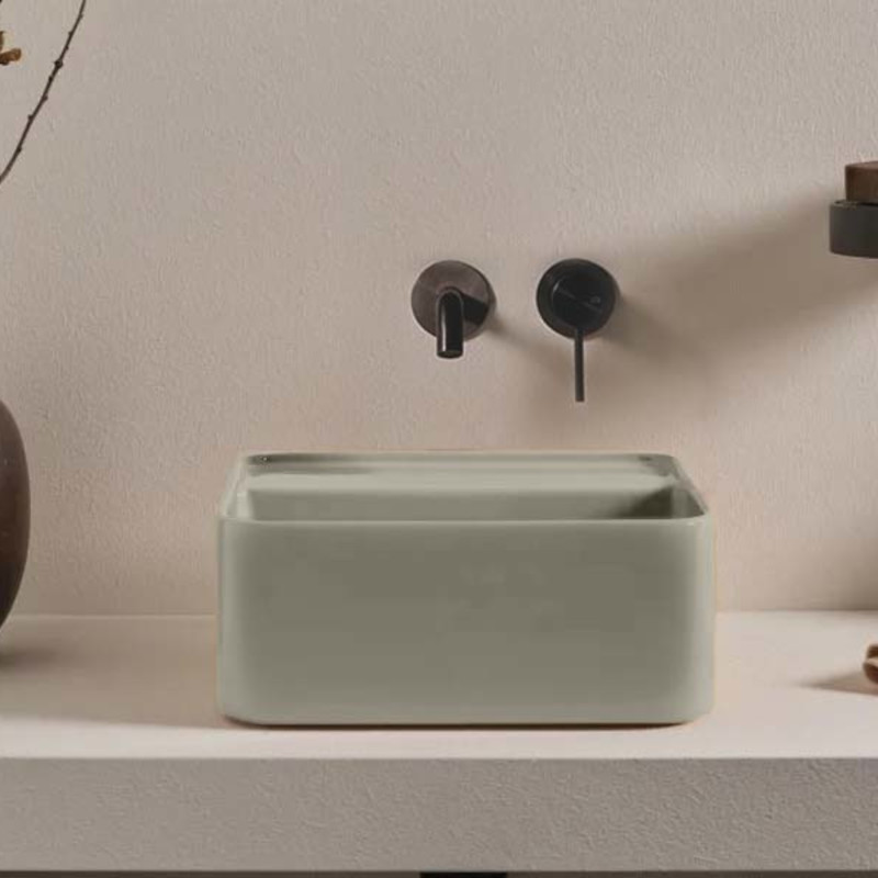 CIELO Les Petites Раковина квадратная накладная или подвесная без отверстия под смеситель, без слива-перелива. Все стороны покрыты эмалью. При установке на столешницу рекомендуется запросить опцию “RETTIFICA”. В комплекте с крепежами. Размеры: 35x35x16h см. Цвет Lino.