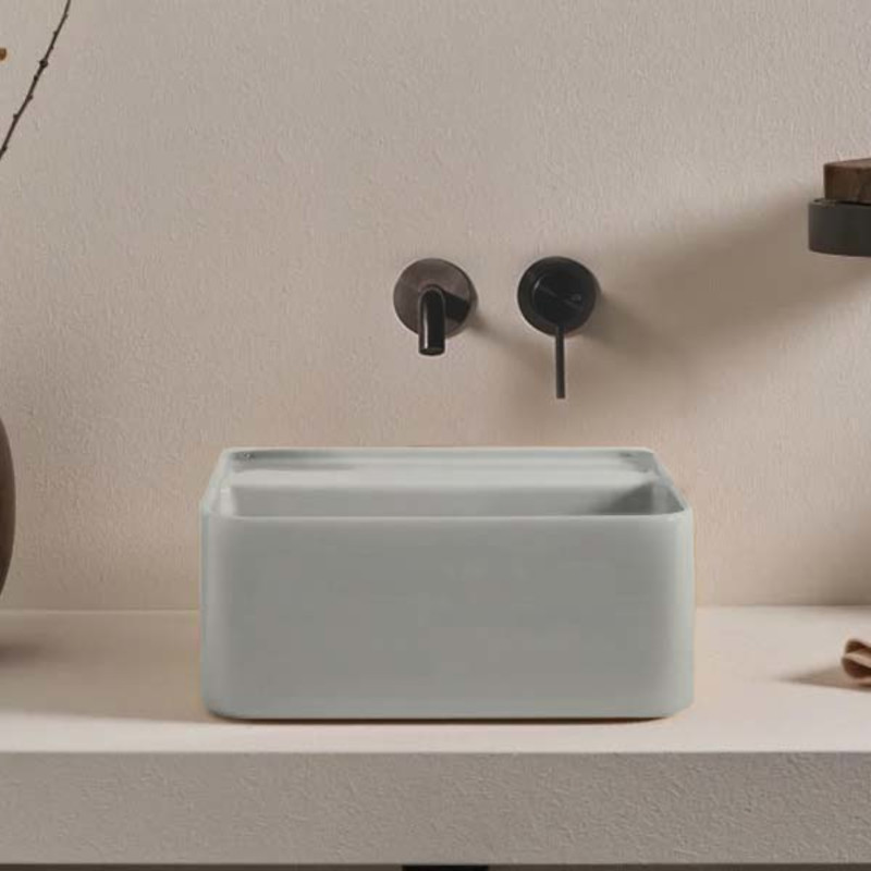 CIELO Les Petites Раковина квадратная накладная или подвесная без отверстия под смеситель, без слива-перелива. Все стороны покрыты эмалью. При установке на столешницу рекомендуется запросить опцию “RETTIFICA”. В комплекте с крепежами. Размеры: 35x35x16h см. Цвет Pomice.