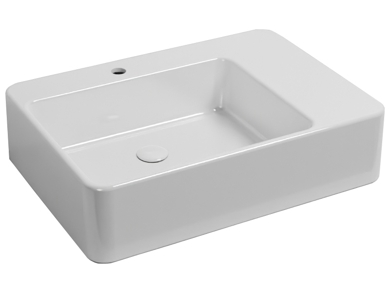 отверстий, без слива-перелива. Одна сторона не покрыта эмалью, в комплекте с крепежами. Размеры: 72 x 50 x h17 см. Цвет Glossy White.