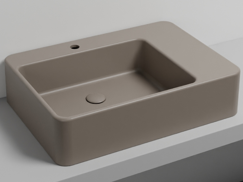 отверстий, без слива-перелива. Одна сторона не покрыта эмалью, в комплекте с крепежами. Размеры: 72 x 50 x h17 см. Цвет Arenaria.