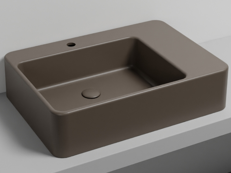 отверстий, без слива-перелива. Одна сторона не покрыта эмалью, в комплекте с крепежами. Размеры: 72 x 50 x h17 см. Цвет Cacao.