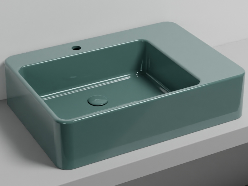 отверстий, без слива-перелива. Одна сторона не покрыта эмалью, в комплекте с крепежами. Размеры: 72 x 50 x h17 см. Цвет Smeraldo.