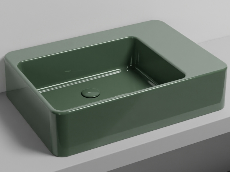 CIELO Marcel MALASF Раковина накладная или подвесная без отверстия под смеситель, без слива-перелива. Одна сторона не покрыта эмалью, в комплекте с крепежами. Размеры: 72 x 50 x h17 см. Цвет Alga .