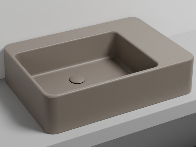 CIELO Marcel MALASF Раковина накладная или подвесная без отверстия под смеситель, без слива-перелива. Одна сторона не покрыта эмалью, в комплекте с крепежами. Размеры: 72 x 50 x h17 см. Цвет Arenaria .