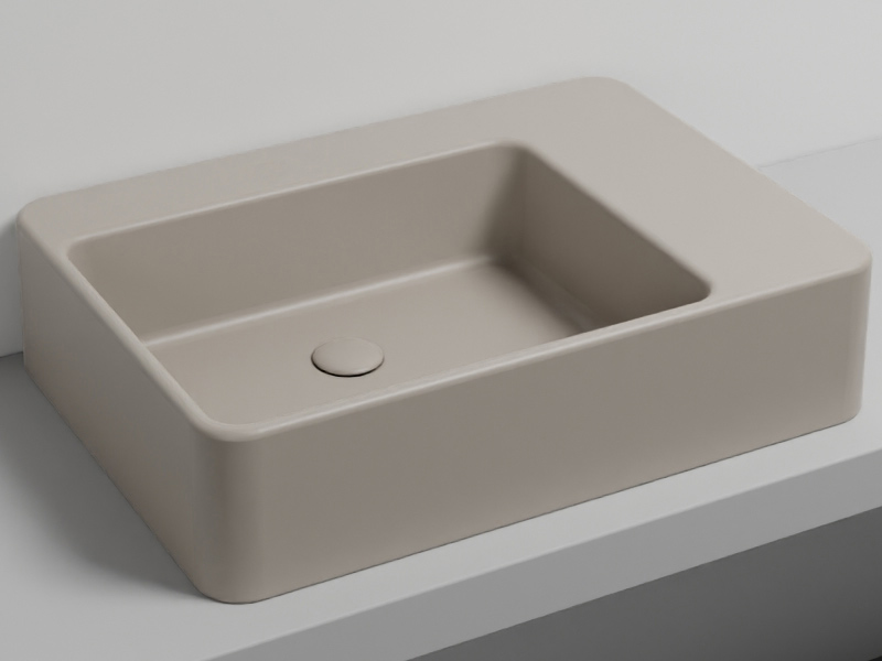 CIELO Marcel MALASF Раковина накладная или подвесная без отверстия под смеситель, без слива-перелива. Одна сторона не покрыта эмалью, в комплекте с крепежами. Размеры: 72 x 50 x h17 см. Цвет Avena.