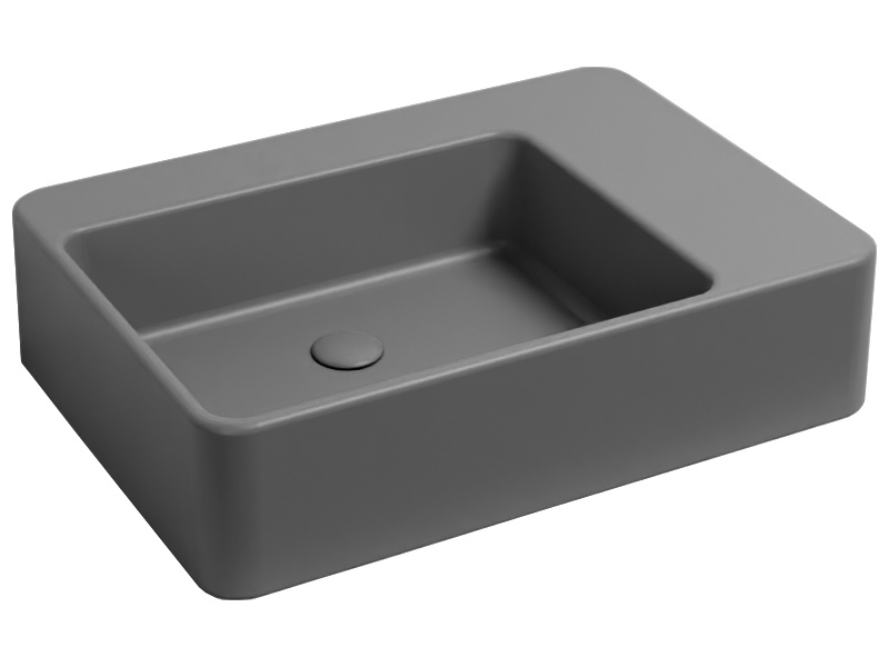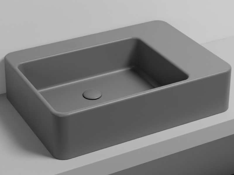 CIELO Marcel MALASF Раковина накладная или подвесная без отверстия под смеситель, без слива-перелива. Одна сторона не покрыта эмалью, в комплекте с крепежами. Размеры: 72 x 50 x h17 см. Цвет Cemento.