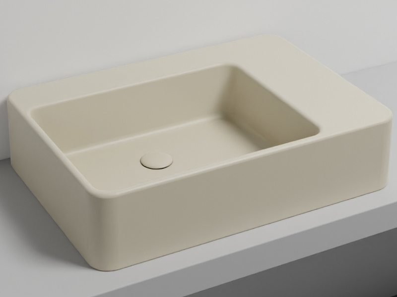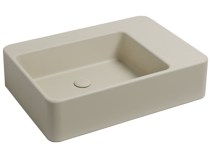 CIELO Marcel MALASF Раковина накладная или подвесная без отверстия под смеситель, без слива-перелива. Одна сторона не покрыта эмалью, в комплекте с крепежами. Размеры: 72 x 50 x h17 см. Цвет Lino.