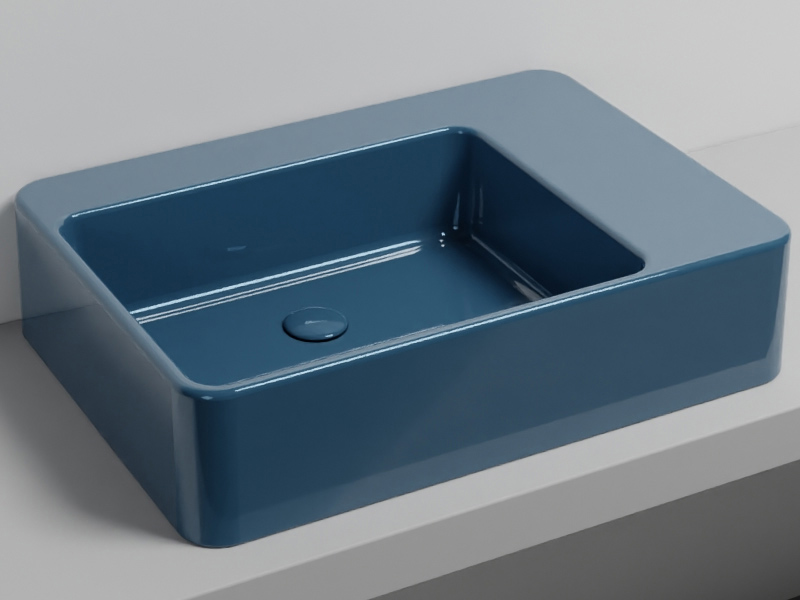 CIELO Marcel MALASF Раковина накладная или подвесная без отверстия под смеситель, без слива-перелива. Одна сторона не покрыта эмалью, в комплекте с крепежами. Размеры: 72 x 50 x h17 см. Цвет Oltremare.