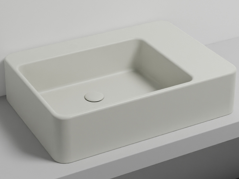 CIELO Marcel MALASF Раковина накладная или подвесная без отверстия под смеситель, без слива-перелива. Одна сторона не покрыта эмалью, в комплекте с крепежами. Размеры: 72 x 50 x h17 см. Цвет Pomice.