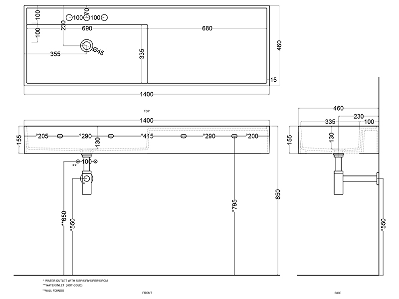 | Отверстие под смеситель | Одно |