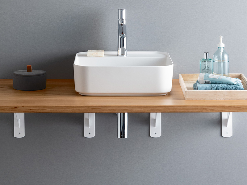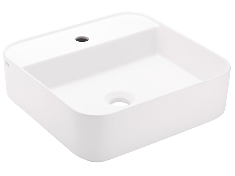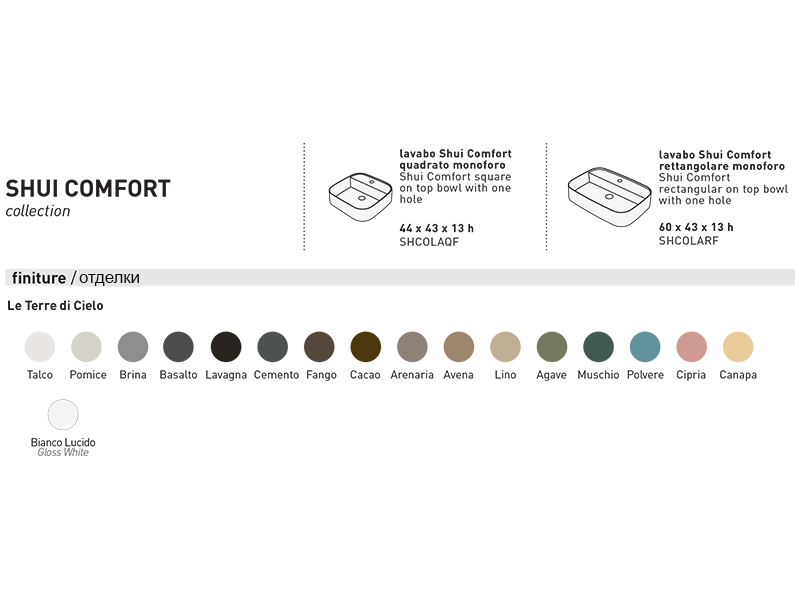 CIELO SHUI COMFORT SHCOLAQF Раковина накладная или подвесная с одним отверстием под смеситель с возможностью выполнения трех отверстий, без слива- перелива. В комплекте с крепежами. Одна сторона не покрыта эмалью. Размеры: 44x43x13h см. Цвет Gloss white.