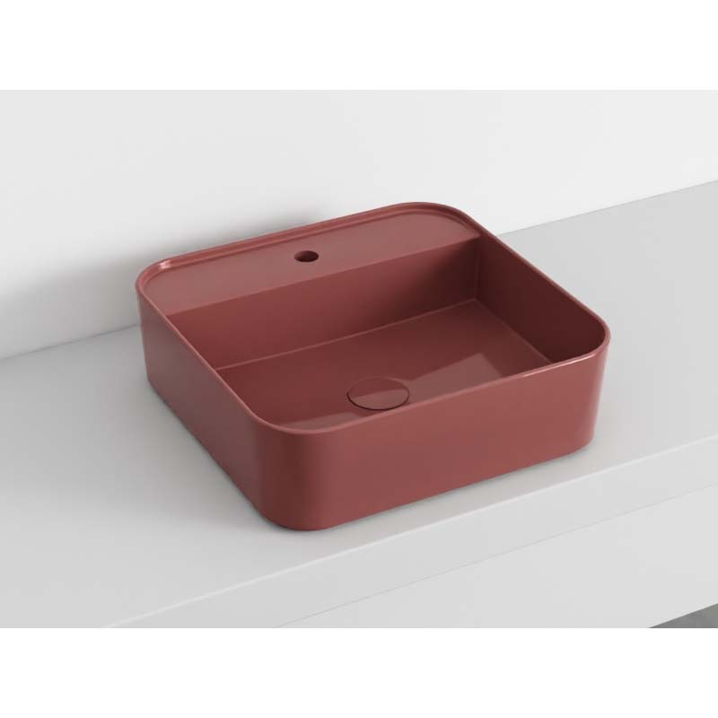 CIELO SHUI COMFORT SHCOLAQF Раковина накладная или подвесная с одним отверстием под смеситель с возможностью выполнения трех отверстий, без слива- перелива. В комплекте с крепежами. Одна сторона не покрыта эмалью. Размеры: 44x43x13h см. Цвет Corallo.