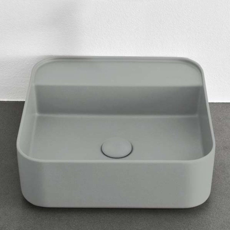 CIELO SHUI COMFORT SHCOLAQF Раковина накладная или подвесная без отверстия под смеситель, без слива- перелива. В комплекте с крепежами. Одна сторона не покрыта эмалью. Размеры: 44x43x13h см. Цвет Brina.