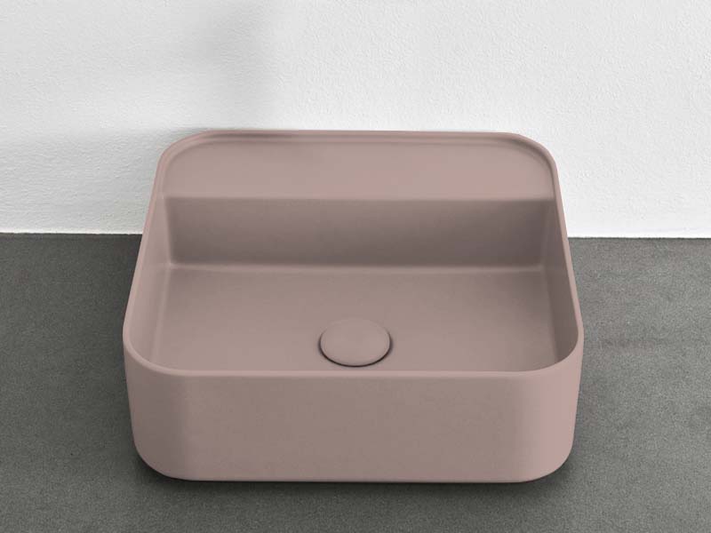 CIELO SHUI COMFORT SHCOLAQF Раковина накладная или подвесная без отверстия под смеситель, без слива- перелива. В комплекте с крепежами. Одна сторона не покрыта эмалью. Размеры: 44x43x13h см. Цвет Cipria.