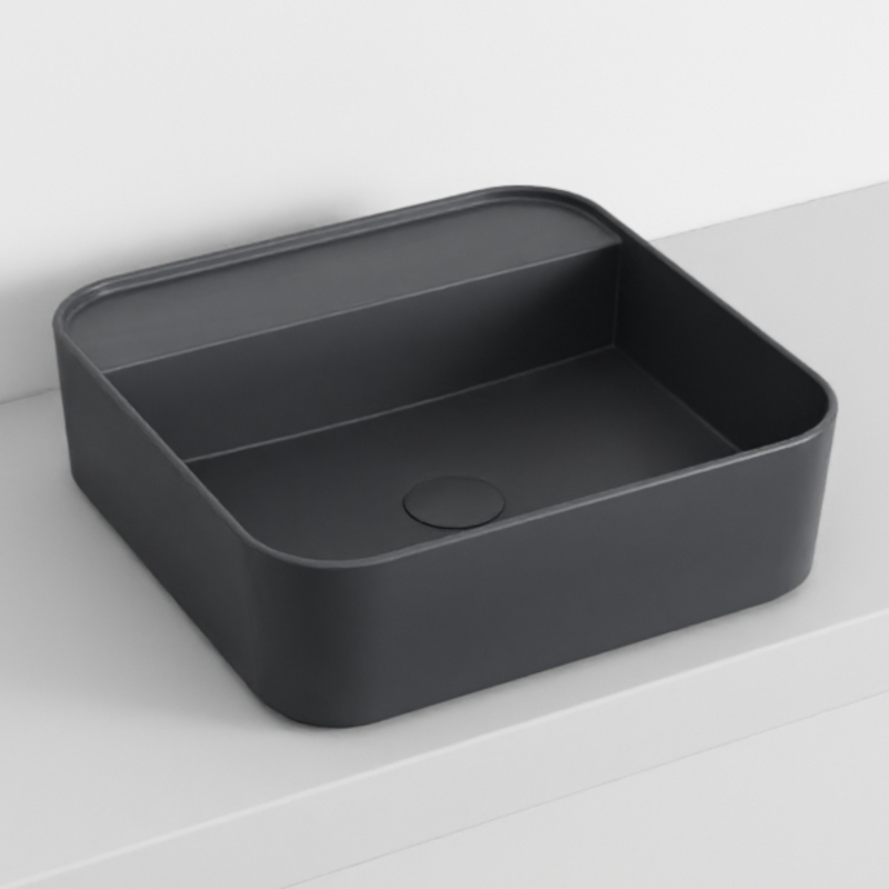 CIELO SHUI COMFORT SHCOLAQF Раковина накладная или подвесная без отверстия под смеситель, без слива- перелива. В комплекте с крепежами. Одна сторона не покрыта эмалью. Размеры: 44x43x13h см. Цвет Lavagna.
