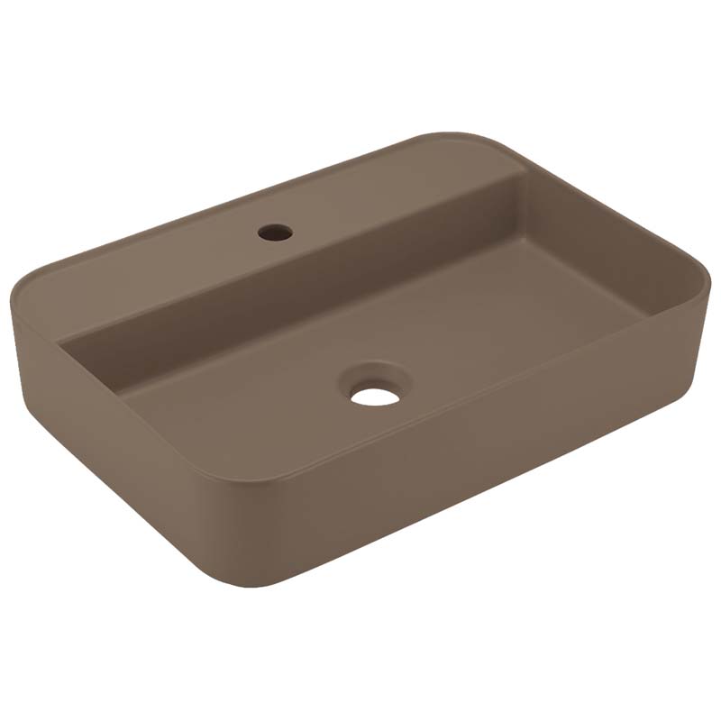 CIELO Shui Comfort SHCOLARF Раковина накладная или подвесная с одним отверстием под смеситель с возможностью выполнения трех отверстий, без слива-перелива. Крепления в комплекте. Одна сторона не покрыта эмалью. Размер 60х43х13h см. Цвет Arenaria.