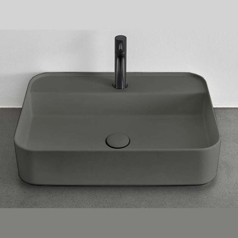 CIELO Shui Comfort SHCOLARF Раковина накладная или подвесная с одним отверстием под смеситель с возможностью выполнения трех отверстий, без слива-перелива. Крепления в комплекте. Одна сторона не покрыта эмалью. Размер 60х43х13h см. Цвет Cemento.