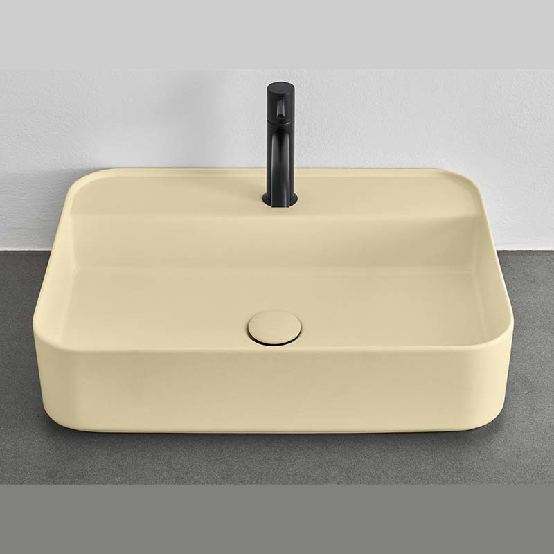 CIELO Shui Comfort SHCOLARF Раковина накладная или подвесная с одним отверстием под смеситель с возможностью выполнения трех отверстий, без слива-перелива. Крепления в комплекте. Одна сторона не покрыта эмалью. Размер 60х43х13h см. Цвет Canapa.