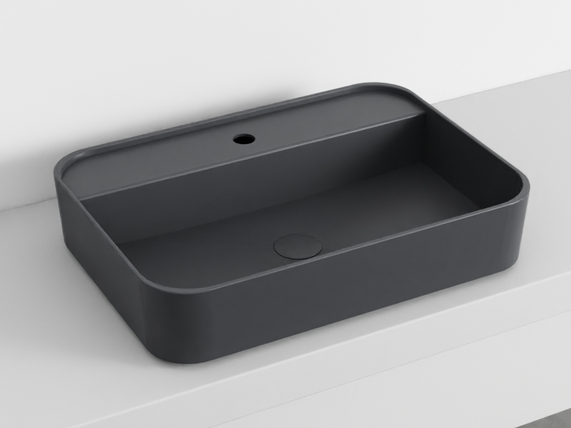 CIELO Shui Comfort SHCOLARF Раковина накладная или подвесная с одним отверстием под смеситель с возможностью выполнения трех отверстий, без слива-перелива. Крепления в комплекте. Одна сторона не покрыта эмалью. Размер 60х43х13h см. Цвет Lavagna.