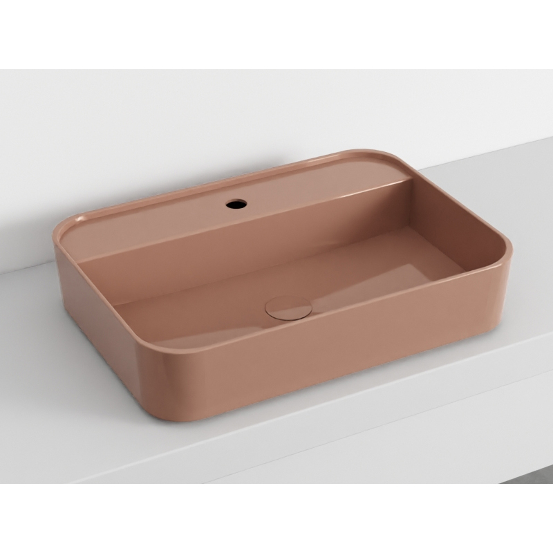 CIELO Shui Comfort SHCOLARF Раковина накладная или подвесная с одним отверстием под смеситель с возможностью выполнения трех отверстий, без слива-перелива. Крепления в комплекте. Одна сторона не покрыта эмалью. Размер 60х43х13h см. Цвет Ninfea.