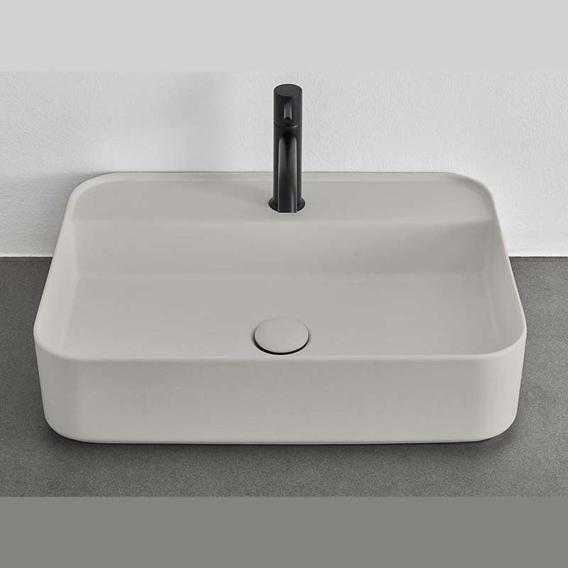 CIELO Shui Comfort SHCOLARF Раковина накладная или подвесная с одним отверстием под смеситель с возможностью выполнения трех отверстий, без слива-перелива. Крепления в комплекте. Одна сторона не покрыта эмалью. Размер 60х43х13h см. Цвет Pomice.