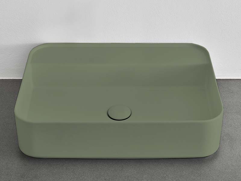 CIELO Shui Comfort SHCOLARF Раковина накладная или подвесная без отверстия под смеситель, без слива-перелива. Крепления в комплекте. Одна сторона не покрыта эмалью. Размер 60х43х13h см. Цвет Agave.