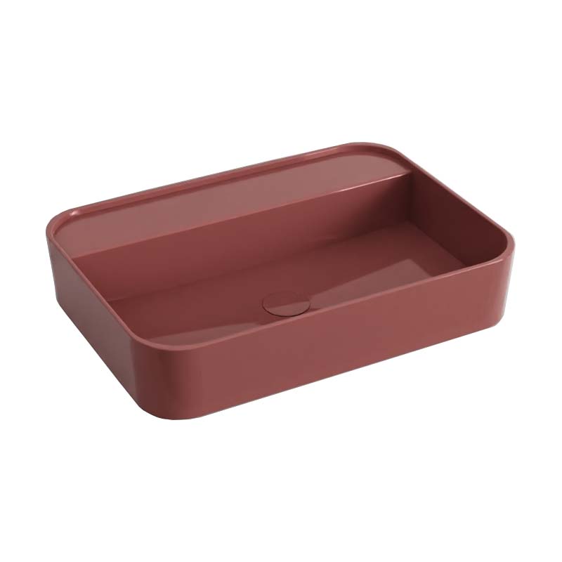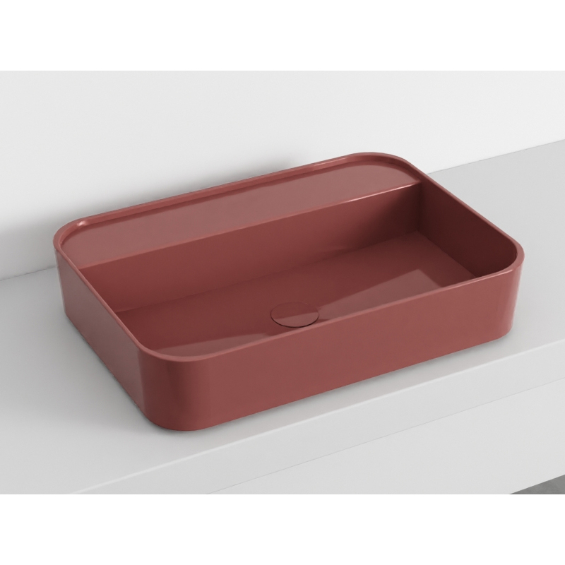 CIELO Shui Comfort SHCOLARF Раковина накладная или подвесная без отверстия под смеситель, без слива-перелива. Крепления в комплекте. Одна сторона не покрыта эмалью. Размер 60х43х13h см. Цвет Corallo.