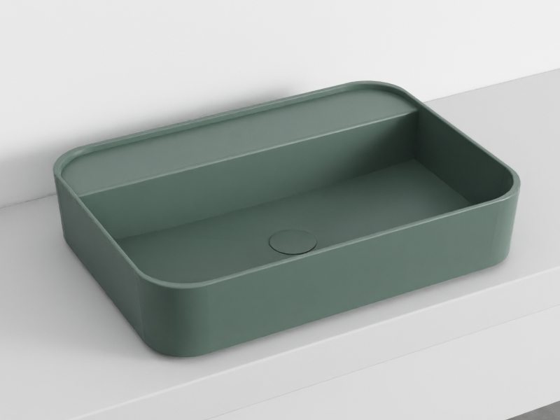 CIELO Shui Comfort SHCOLARF Раковина накладная или подвесная без отверстия под смеситель, без слива-перелива. Крепления в комплекте. Одна сторона не покрыта эмалью. Размер 60х43х13h см. Цвет Muschio.
