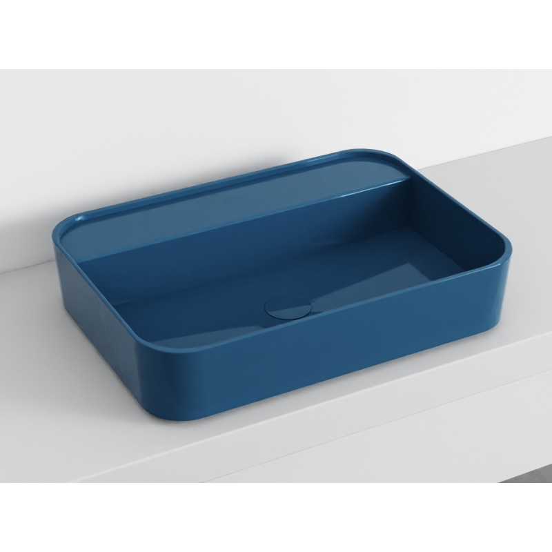 CIELO Shui Comfort SHCOLARF Раковина накладная или подвесная без отверстия под смеситель, без слива-перелива. Крепления в комплекте. Одна сторона не покрыта эмалью. Размер 60х43х13h см. Цвет Oltremare.