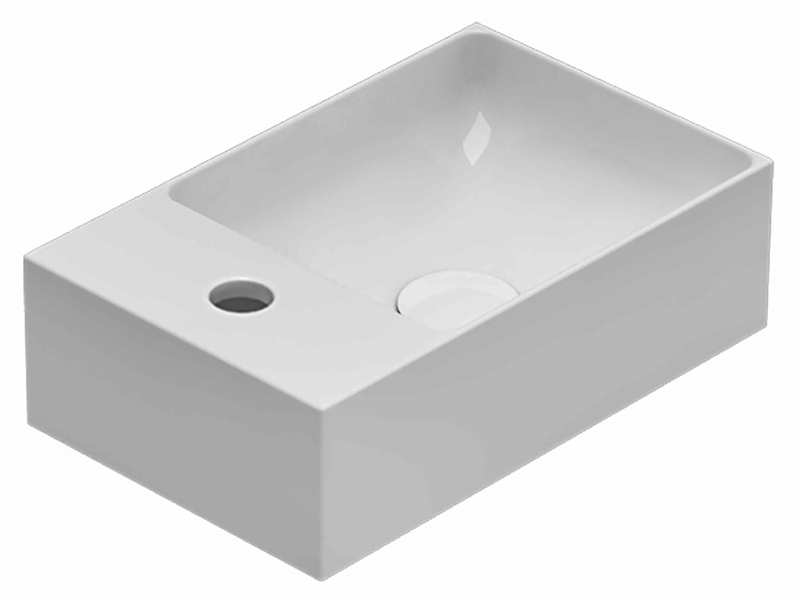 T-EDGE Раковина накладная или подвесная c 1 отв.под смеситель, полка слева, цвет Bianco