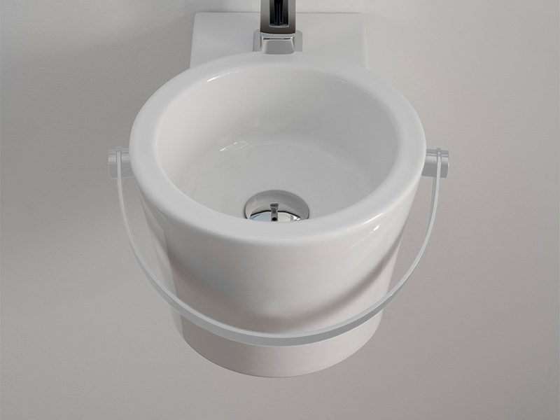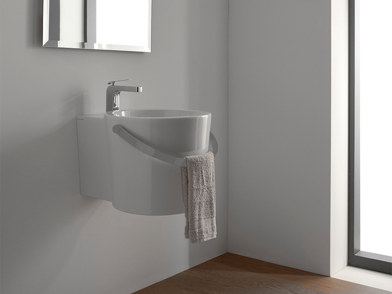BUCKET Раковина накладная или подвесная, без перелива,с белым полотенцедержателем, цвет White.