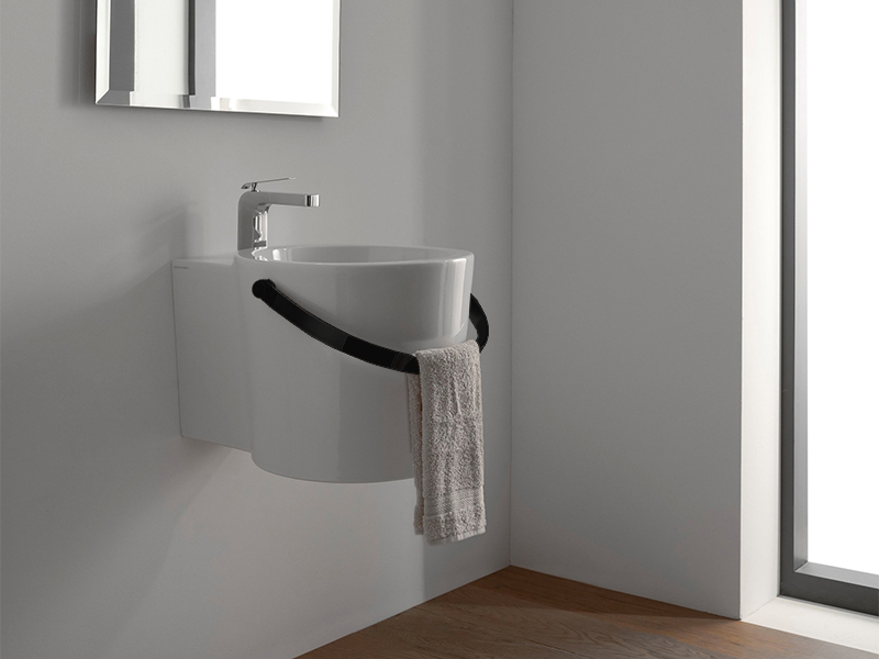 BUCKET Раковина накладная или подвесная, без перелива,с черным полотенцедержателем, цвет White.