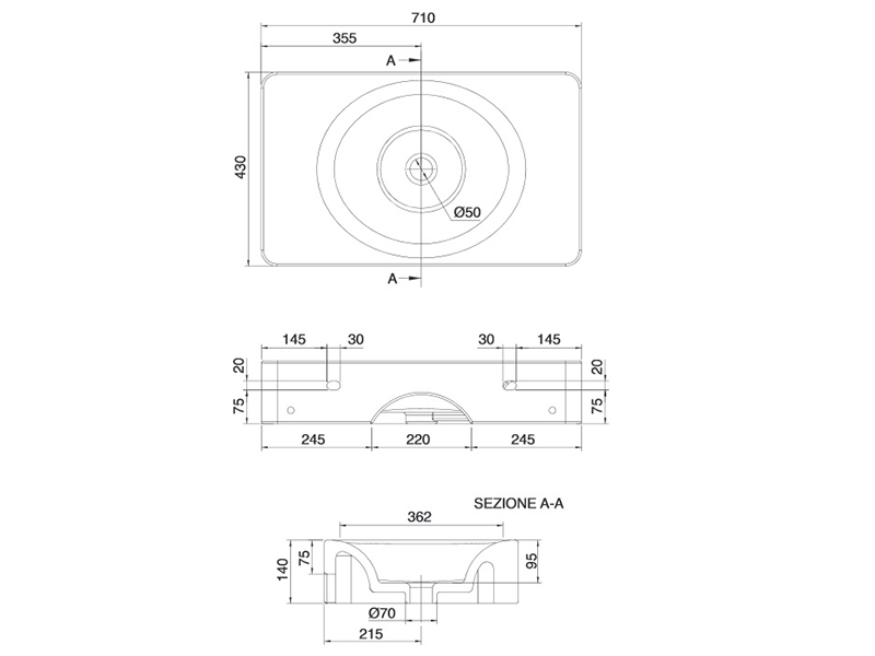SCARABEO FUJI 6002 Раковина накладная или подвесная без отверстия под смеситель, без перелива. Размеры: 71x43,5x14 см. Настенные крепления входят в комплект. Цвет белый глянцевый.