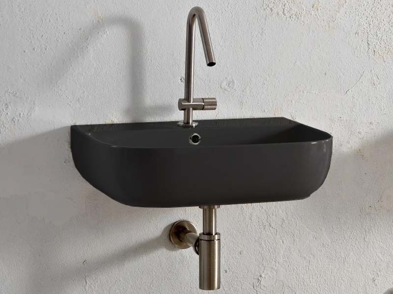 SCARABEO GLAM 1811 Раковина накладная или подвесная с одним отверстием под смеситель, с сливом-переливом. Настенные крепления входят в комплект. Размеры: 55x42x14h см. Цвет Ardesia.