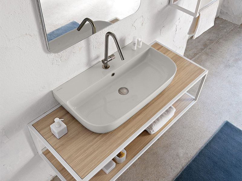 SCARABEO GLAM 75/S 1812 Раковина накладная или подвесная с одним отверстием под смеситель, с сливом-переливом. Настенные крепления входят в комплект. Размеры: 75x42x14h см. Цвет Pearl.