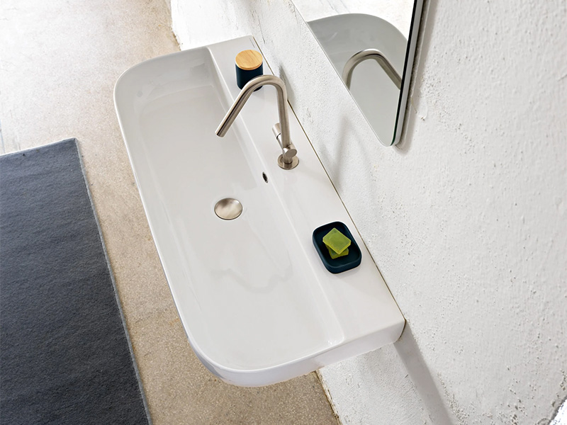 SCARABEO GLAM 95/S 1813 Раковина накладная или подвесная с одним отверстием под смеситель, с сливом-переливом. Настенные крепления входят в комплект. Размеры: 95x42x14h см. цвет White.