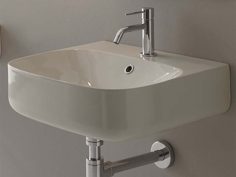 SCARABEO MOON 5507 Раковина накладная или подвесная с одним отверстием под смеситель, с сливом - переливом. Размеры: 50x45x15h см. Настенные крепления входят в комплект. Цвет Pearl.