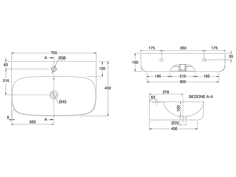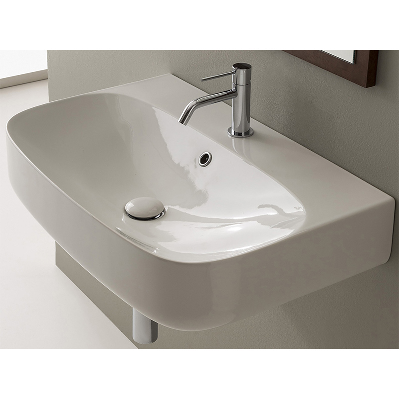 SCARABEO MOON 5508 Раковина накладная или подвесная с одним отверстием под смеситель, с сливом - переливом. Размеры: 70x45x15h см. Настенные крепления входят в комплект. Цвет White.