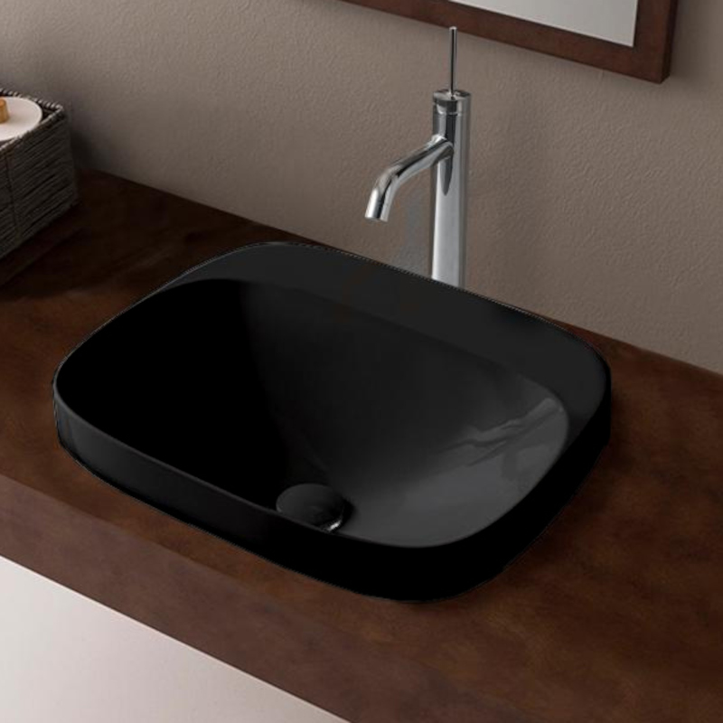 SCARABEO MOON 5508 Раковина накладная или подвесная с одним отверстием под смеситель, с сливом - переливом. Размеры: 70x45x15h см. Настенные крепления входят в комплект. Цвет Ardesia.
