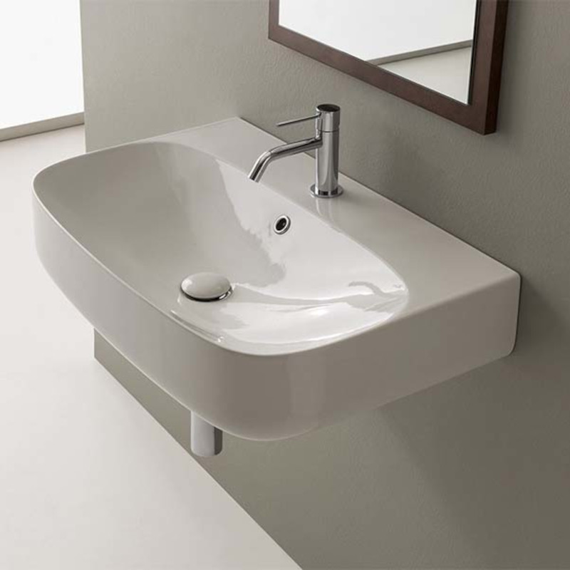 SCARABEO MOON 5509 Раковина накладная или подвесная с одним отверстием под смеситель, с сливом - переливом. Размеры: 90x45x15h см. Настенные крепления входят в комплект. Цвет White.